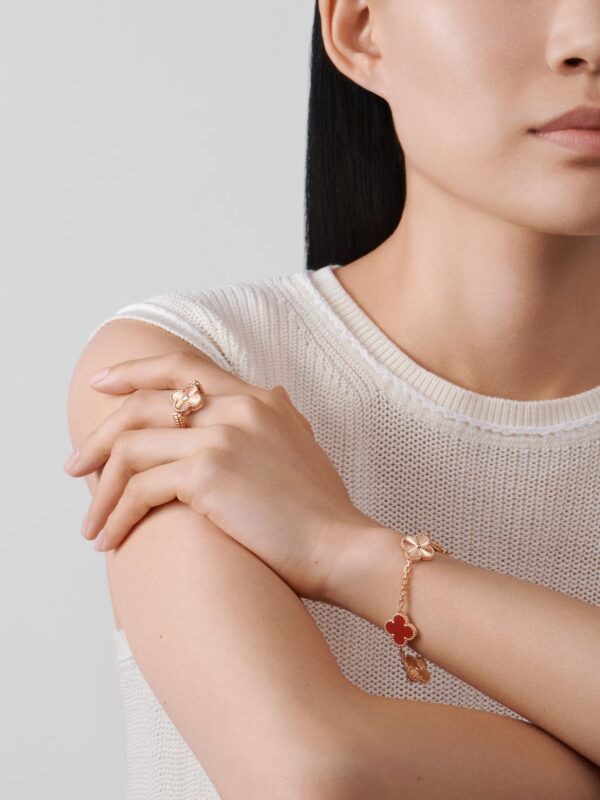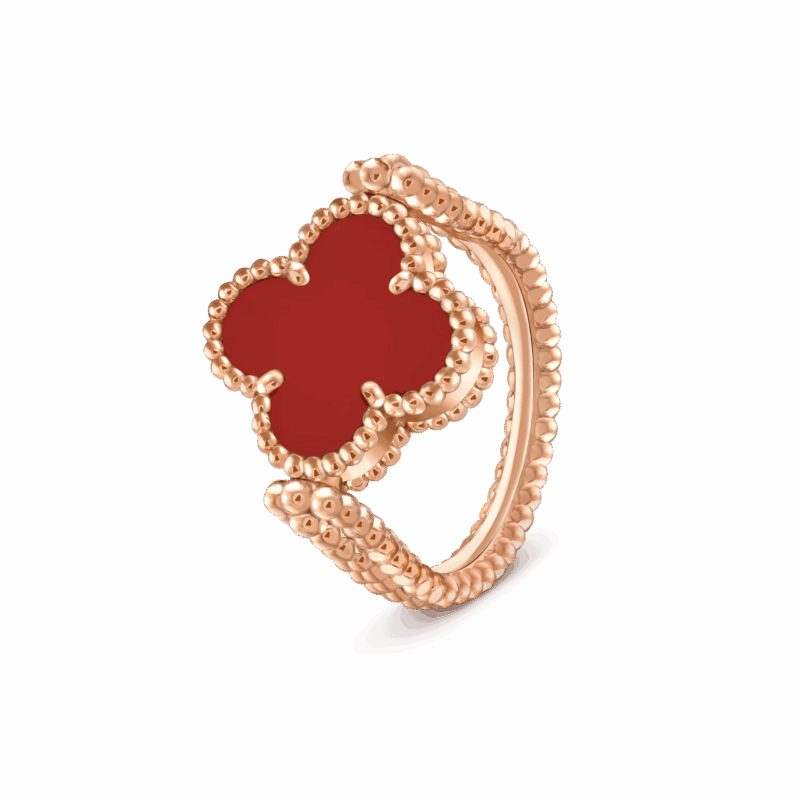 Каблучка Vintage Alhambra (двостороння) з діамантом 0,04ct та сердоліком