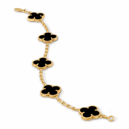 Браслет Vintage Alhambra, 5 мотивів, золото 750 проби, інкрустований оніксом. Довжина браслету 19 см
