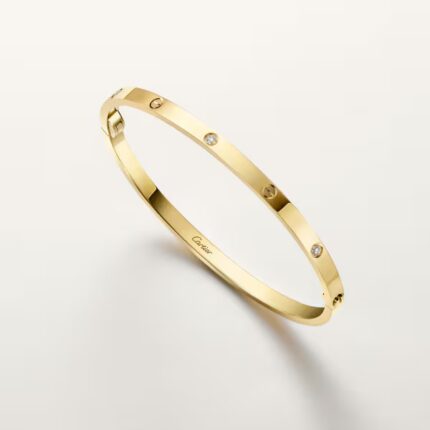 Браслет Love, маленька модель, золото 750 проби, інкрустований 6 діамантами круглої огранки загальною вагою 0,15 карата, застібка з функціональним гвинтом і шарніром.