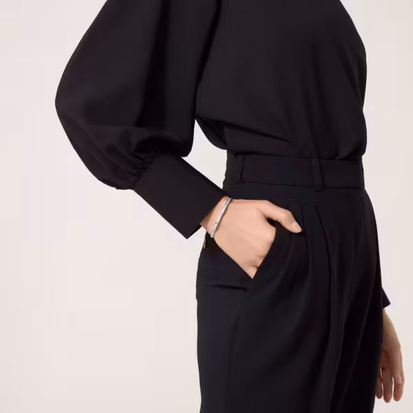 Дизайн швидко виріс з прикраси у приватний ритуал. Лаконічне коло тримає ритм гвинтів, ніби серцебиття взаємної обіцянки. Тіло браслета виконане вручну із золота 750 проби — матеріалу, що з роками лише набирає глибини.