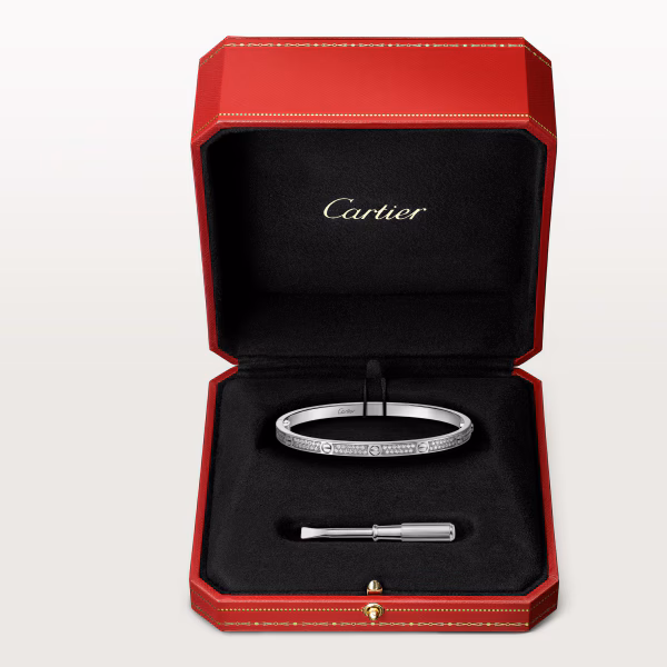 Браслет Love, маленька модель, золото 750 проби, інкрустований розсипом діамантів круглої огранки загальною вагою 0,95 карата, застібка з функціональним гвинтом і шарніром.