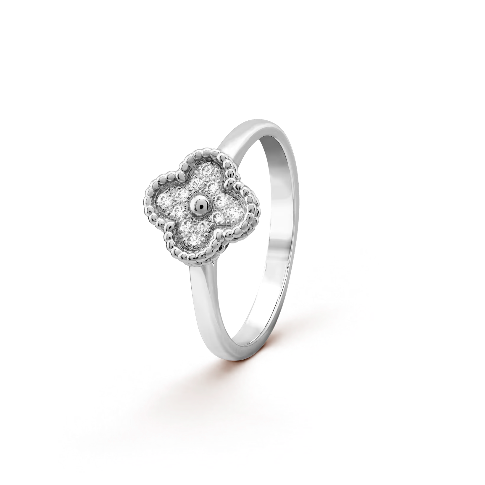 Каблучка Sweet Alhambra, золото 750 проби, інкрустована діамантами круглої огранки загальною вагою 0,08 карата.