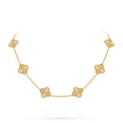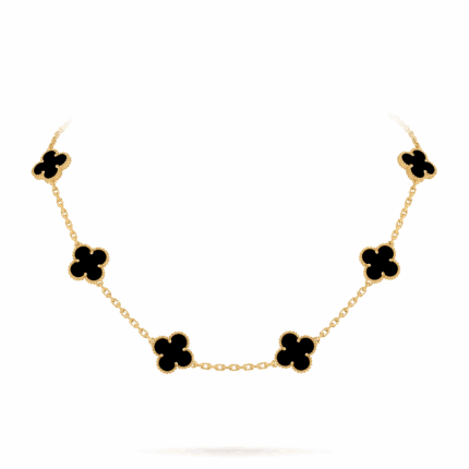 Кольє Vintage Alhambra 10 мотивів, золото 750 проби, інкрустоване діамантами круглої огранки загальною вагою 4,83 карата. Довжина 42 см.