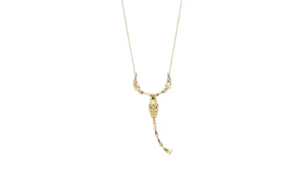 Кольє впевнено тримає лінію шиї й не перевантажує образ, залишаючи головну роль вам. Воно доречне зранку та у вечірній час — світло лягає на шкіру природно.