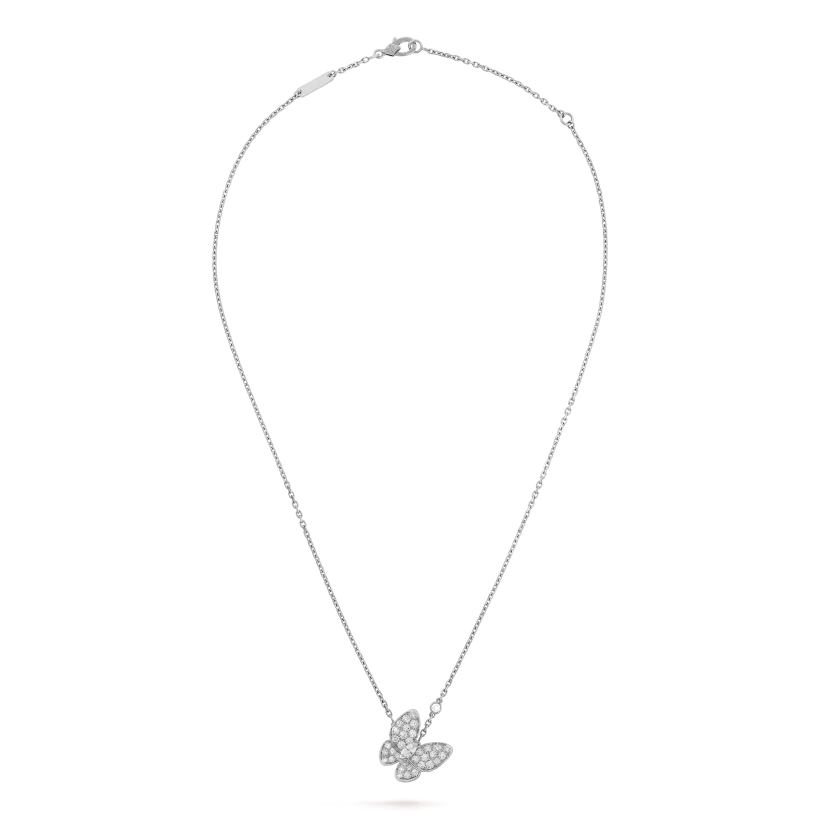 Підвіска Two Butterfly, золото 750 проби, інкрустована натуральними діамантами круглої огранки та огранки “маркіз” загальною вагою 0,88 карата. Довжина ланцюжка: 42 см.